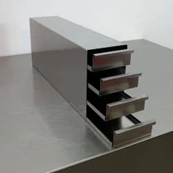 Racks for Eppendorf CryoCube F440/ F570 ultra low freezer. Stainless steel. Four trays per rack. Rack dimensions (heightwidthdepth): 230145560 mm. For freezer boxes with a base of up to 136 x 136 mm. Up to 16 boxes per rack. Suitable for U410 ULT freezer that can hold up to 15 racks.