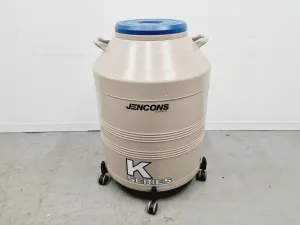 The Jencons 5K K Series Liquid Nitrogen Dewar is a cryogenic storage container designed for secure, long-term sample preservation at temperatures near -196°C. This system includes a trolley for safe and ergonomic transport of the Dewar within laboratory or biomanufacturing environments, and 6 integrated sample racks to organize cryogenic vials or tubes efficiently.