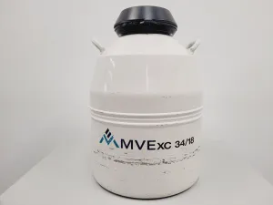 The MVE XC 34/18 Nitrogen Dewar is a robust and high-capacity cryogenic storage container, perfect for laboratory needs. Previously utilized in a university setting, this dewar remains in good cosmetic condition, despite showing signs of use. Its generous 34-litre capacity and 9 cm neck opening can accommodate up to 6 canisters for efficient sample storage. Serial number ARB97K105 confirms this model, designed to meet demanding research and storage requirements.