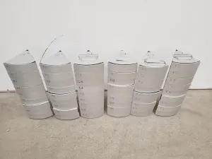 This Taylor-Wharton K Series 3K Cryogenic Sample Storage Dewar was removed from a university lab where it was surplus to requirements. The unit is in reasonably good cosmetic condition with marks from use. It has not been tested because we do not have a supply of liquid nitrogen at our site. Please note if there are any problems with this dewar within 45 days from delivery we can of course offer a full refund in exchange for return of the unit - but we cannot reimburse costs for lost nitrogen, samples, or other consequential loss. There are 6 racks inside labelled A - F. Each rack has 9 Triangle Trays. Racks A, B & D are missing handles.Tray depth - 4cm Dewar depth - 76cm Capacity - 48L