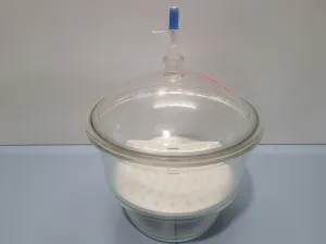 The DURAN / SCHOTT glass desiccator with a diameter of 250 mm is crafted from borosilicate glass 3.3, ensuring high durability and resistance to thermal shock. Its outer diameter measures 329 mm, while the inner diameter is Ø240 mm. The desiccator comes with a porcelain disc Ø 240 mm and a ceramic desiccator plate, both designed to efficiently support drying processes. Featuring a tube lid with a tap, this desiccator facilitates safe and effective moisture removal from samples.