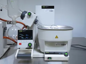 The Buchi R-300 Rotavapor System paired with the V-700 Vacuum Pump, I-300 Interface, and B-305 Water Bath offers: