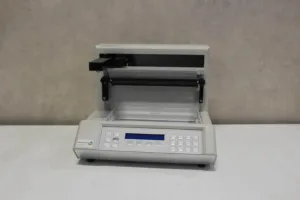 The Gilson FC 203B Fraction Collector is expertly designed for versatile sample collection requirements, supporting containers such as microplates, vials, and tubes. It features a built-in keyboard that simplifies installation and operation, ensuring seamless integration with your HPLC system. Fractions are collected precisely by time, drop, or peak to match your specific chromatographic conditions. This model boasts a 3-port PTFE valve with an internal volume of 3.5 µL, can handle detector inputs of ± 100mV full scale, and offers programmable time units ranging from 0.01 to 99.9 minutes. Its maximum collection capacity is for a 20 ml tube, with a maximum speed of 20 drops per second. The unit's external dimensions measure 29 x 33 x 28 cm, with internal dimensions of 22.5 x 8 cm, and a weight of 5 kg.