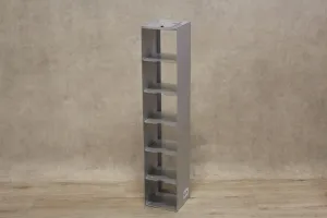 The aluminum freezer rack is designed to optimize storage for ampoule boxes within laboratory settings. With overall dimensions of 140 x 140 x 730 mm, it features six compartments, each measuring 135 x 135 x 115 mm. This rack ensures efficient organization while maintaining the integrity and accessibility of stored materials in cold environments.
