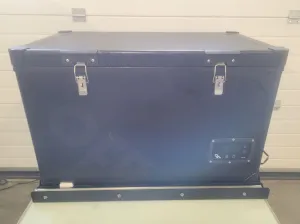 The Indel B Steel TB74 is a versatile electric compressor cooler and freezer designed to meet diverse refrigeration needs. It offers a generous capacity of 71 liters with a temperature range of -18°C to 10°C, ensuring flexibility for cooling or freezing. The unit comes equipped with convenient Rail Support for easy transport and storage, part of the renowned STEEL - Vesna series. This model supports both cigarette lighter (12V/24V DC) and standard 220V AC power sources, making it suitable for both mobile and stationary uses. Interior LED lighting enhances visibility within the unit. Manufactured in 2021, it combines durability with modern design for optimal performance.