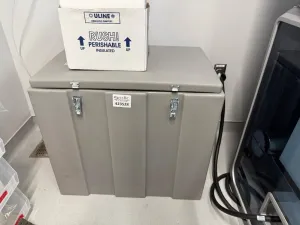 This laboratory ice storage chest is engineered for reliable storage of ice used in various laboratory and industrial processes. Featuring a durable exterior construction, the unit is equipped with secure latches and a hinged lid to ensure easy access while maintaining cold chain integrity. The sturdy design supports cold storage requirements essential for sample preservation, cryogenic applications, and biomedical research workflows such as molecular diagnostics and bioprocessing.
