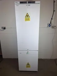 The Liebherr LCv 4010 Mediline is a dependable combined laboratory refrigerator and freezer, providing precise temperature management for laboratory samples. This unit has a refrigerator compartment with a net capacity of 240 liters and a freezer compartment with 105 liters. The refrigerator operates in a range of +3°C to +16°C, while the freezer maintains temperatures between -9°C and -30°C. With measurements of 2003 mm in height, 601 mm in width, and 618 mm in depth, it is designed for efficient use of space. Offering stable operation and excellent temperature consistency, this unit is engineered with premium quality for low energy consumption. It includes an advanced electronic control system with inbuilt audible and visual alarms to ensure sample safety, and it is available in ATEX spark-free models for the safe storage of samples and flammables. Key features include forced air cooling, a digital temperature display, a temperature alarm, and environmentally friendly refrigerants. The unit's refrigerator defrosts automatically, while the freezer requires manual defrosting. It comes with a 2-year warranty for assured reliability.