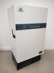 This New Brunswick Scientific U570 Ultra Low Temperature Freezer was decommissioned from a university lab due to surplus. The unit has been thoroughly tested and powers up, maintaining optimal performance. It is in good working order, showing cosmetic wear consistent with prior use. The internal dimensions are L58 x W77 x H126 cm, and it includes three adjustable shelves measuring 56 x 76 cm each.