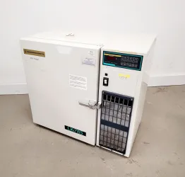 The New Brunswick U6785 is an ultra-low temperature freezer designed for laboratory environments, offering a reliable and efficient solution for cryogenic storage needs. Originally part of a university's surplus inventory, this unit is fully functional and maintains excellent operational performance, although a thermometer is not included. Cosmetically, it is in good condition, with the exception of a missing foot. The unit includes one shelf with dimensions of 39 x 28 cm, providing substantial storage space for samples requiring ultra-low temperatures.