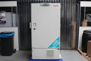 The Sanyo MDF-U73V ultra low temperature freezer offers a precise temperature range from -50°C to -86°C with 1°C increments, suitable for long-term preservation of biological samples used in molecular diagnostics and bioprocessing workflows. This model features a spacious 728 L capacity with interior dimensions of 870 x 600 x 1400 mm, optimized for efficient storage of reagents, enzymes, and cell cultures commonly used in biotechnology and biomedical engineering.