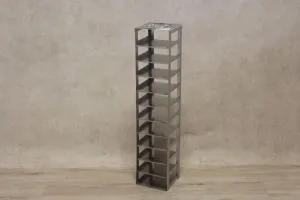 The Stainless Steel Freezer Rack for Ampoule Boxes is a robust and efficient storage solution designed for laboratory environments. It features overall dimensions of 140 x 140 x 665 mm, providing ample space while maintaining a compact form. The rack consists of 11 compartments, each measuring 135 x 135 x 55 mm, meticulously crafted to securely store ampoule boxes. Its stainless steel construction ensures durability and stability within freezing and cryogenic storage applications. Ideal for laboratories needing organized and reliable ampoule storage solutions.