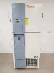 This Thermo Scientific Forma 8694 -86°C Double Compartment ULT Freezer was acquired from a university laboratory surplus. The unit is in good cosmetic condition and powers on, but during testing, it emitted buzzing sounds, hissing, and smoke, thus necessitating its listing as a Spares/Repair item. Ideal for sourcing parts or repair projects, this ultra-low temperature freezer is designed for rigorous cryogenic storage needs.