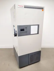The Thermo Scientific Revco UXF Ultra Low Temperature Freezer, model UXF50086V63, is an ideal solution for secure and efficient sample preservation in high-demand research environments. Previously utilized in a university laboratory, it has been maintained in surplus condition and verified operational with a digital thermometer test (thermometer not included). The unit includes four spacious shelves measuring 71 by 69 cm, facilitating organized storage. Its cosmetic condition is good, bearing minor scuffs from prior use, indicative of its practical and functional deployment in a rigorous academic setting.