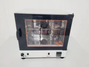 Hybaid Mini 10 Hybridisation Rotary Laboratory Oven, originally sourced from a university lab, ensures efficient hybridisation processes. The unit powers on effectively with fully functional incubation and rotisserie features. Please note, a digital thermometer is not included. It comes in good cosmetic condition, exhibiting only minor marks. While no bottles or tubes are provided, a set of caps accompanies the unit. Ideal for research applications requiring precise temperature control and sample rotation.