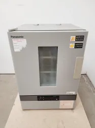 The Panasonic Electric Laboratory Oven, Model MOV-112-PE, was procured from a university laboratory where it was no longer needed. This unit reliably powers on and initially set to 160˚C, quickly achieved temperature increment. Within 10-15 minutes, it reached 156˚C, with external thermometers reading around 150˚C. The oven is capable of reaching 250˚C in under an hour. Note that the characteristic odor of such ovens is present. A digital thermometer does not accompany this unit. Its cosmetic condition is fair, reflecting reasonable use. Interior dimensions are D48 x W45 x H45 cm with two shelves measuring 43 x 43 cm.