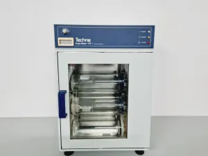 The Techne HB-1D Hybridizer Oven efficiently supports various laboratory hybridization applications. Although previously part of a university's equipment, it has been determined surplus to requirements. The unit is in excellent working condition, aside from missing back feet, and powers up smoothly. Please note that a thermometer is not included. This oven comes with four Techne glass vials, ideal for ensuring precise temperature control and uniform heating, making it a valuable tool in any molecular biology laboratory.