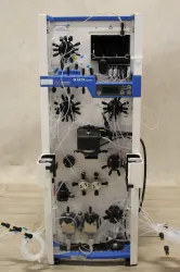 The Amersham Biosciences ÄKTAxpress is a liquid chromatography system specifically designed for automated, multi-step purification processes. It is engineered to efficiently purify Histidine-tagged and Glutathione S-Transferase (GST)-tagged recombinant proteins from either clarified or crude cell lysates. ÄKTAxpress accommodates purification protocols that include up to four chromatography steps such as affinity chromatography, ion exchange, desalting, and gel filtration.
