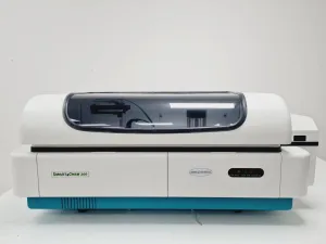 The AMS Alliance SmartChem 200 Automated Discrete Analyzer is a versatile and reliable laboratory instrument, originally sourced from a university lab where it exceeded requirements. It is currently in good cosmetic condition and successfully powers up, performing a self-calibration test that confirms the motor's operational integrity. Although further functional testing is limited by the requirement for compatible software connectivity, this analyzer is designed to enhance analytical precision and efficiency in various professional laboratory settings.