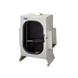 Branson Sound-proof EnclosureAlthough ultrasound is above the audible range of the human ear, mechanical noise occurs when liquids are treated ultrasonically. The noise may be disturbing in a room with low ambient noise level if exposed for prolonged periods of time. Operating the Sonifier® in the Soundproof Enclosure can minimize mechanical noise produced by ultrasonic processing. The sturdy cabinet is lined with waterproof, sound-absorbing material, which is impervious to most solutions or laboratory regents and can be easily cleaned. A fully-transparent door enables viewing of the process while limiting the noise to an acceptable level. The decibel rating will lower by 20-25db. Openings at the top and bottom of enclosure make for easy access for use with either a cup horn or standard probes. Comes with inside column and adjustable clamp plate. Side panel allows for placement of horns, tips and manuals.