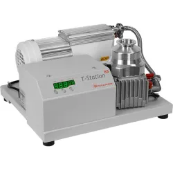 T-Station 85 is a low cost, compact turbomolecular pumping station that seamlessly combines the nEXT85H turbomolecular pump with either a dry diaphragm or oil sealed backing pump, and a simple controller, providing pumping speeds of 47 to 84 ls-1.