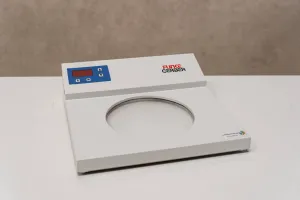 The Funke Gerber ColonyStar Bacteria Counter is designed with an easy-to-clean plastic casing and an adjustable height feature, enhancing user convenience. It features a Ø 145 mm illuminated area with glare-free lighting, accommodating petri dishes up to Ø 145 mm in diameter. For dishes with smaller diameters, it includes a reducing insert. The device measures 250 x 230 x 75 mm and weighs 1.7 kg, making it a compact and efficient tool for laboratory microbial enumeration.