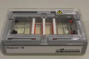 The Horizon 58 is developed for the rapid separation of nucleic acids in agarose mini-gels. Casting components that withstand boiling agarose temperatures and the removable buffer tray for easy cleaning make the Horizon 58 the system of choice for rapid routine use.