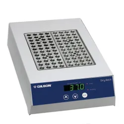 Gilson 36110500 4-Block Digital Dry Bath The Gilson 36110500 4-Block Digital Dry Bath delivers precise temperatures to your samples using digital temperature and time controls. The aluminum blocks (sold separately) concisely fit tubes from 0.5 to 50 mL. The Digital Dry Bath offers convenient digital temperature and time controls with built-in calibration functionality, improving the reliability and reproducibility of your reactions without external thermometers or timers. The Digital Drybath provides a temperature range of Ambient +5°C to 130°C that is adjustable in 0.1°C increments. The timer can be set for up to 999 minutes. Each dry bath is supplied with an insulated block lifter to remove hot blocks.