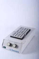 The Thermolyne LM 3413 Heating Block is a robust and efficient dry block heater, designed to accommodate three separate blocks, each capable of holding a total of 12 samples. This thermostat block ensures precise temperature control, making it an ideal choice for laboratories requiring consistent sample incubation and temperature regulation.