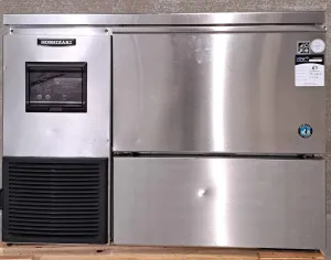 The Hoshizaki FM-150KE-50 is a substructure flake ice machine with a large integrated storage bunker and digital control.