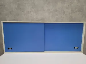 The Interfurn Hanging Cabinet features a sliding door and is designed in blue, measuring 1460mm in width, 600mm in height, and 330mm in depth. Ideal for efficient laboratory storage solutions.