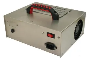 Jenesco FM-1 Ozone Generator The Jenesco FM-1 Ozone Generator is designed for residential applications for use in eliminating tough odors and our least expensive machine for shock treatments of mold and mildew. Its high output (2000 mgph) is more than sufficient to attack mold and mildew, viruses and spores. The FM1 uses 2 laser cut silicone composite plates with stainless steel grids, to produce the maximum ozone output using ambient air as the source gas. They can easily be removed for cleaning, by merely removing a single thumb screw. The FM1 has coverage of up to 3500 sq feet for odors, 500 sq feet for mold. The ozone output is 2000 mgph (milligrams per hour) when used at normal air humidity of 60%. Electrical: 120VAC, 40W, 2A. Made in the USA.INCLUDED: The Jenesco FM-1 Ozone Generator includes: