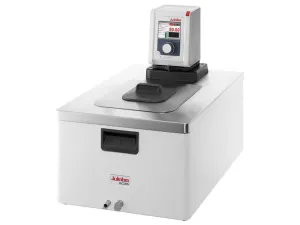Features a color TFT display with central rotary knob controller, multi-lingual interface, integrated programmer, Pt100 port for external temperature control. USB connection for external PC control and data-logging; Digital option includes RS232 port; analog option includes analog interface for voltage or current control. PID temperature control provides ± 0.01°C stability. Infinitely variable centrifugal pump capacity of 8-27 L/min with pressure to 1.5-10.2 psi. Class III (FL) according to DIN 12876-1.