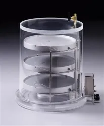 Labconco Heated Product Shelf Chamber, 3 shelvesFor use with any FreeZone Freeze Dryer manufactured afterJuly 2017. Chambers allow for drying of bulk samples, or drying of serumbottles, vials or microplates. The 10" diameter shelves are wireless andremovable so that they may be placed in a freezer for pre-freezing. Each shelfis height adjustable to accommodate a broad variety of sample sizes. Chamberconnects to a FreeZone Freeze Dryer for control and recording of shelftemperature from the Lyo-Works display. Temperature may be set from -20C (-4°F) to +60C (+140F). Each Chamber includes a 12" diameter clear acryliccylinder, vacuum release valve, cap for vacuum port and 8" diameteropening to collector on bottom of chamber. Will fit 10.12” or 14.0” diametercondensers. Short Chambers include three shelves and three temperature probes.Tall Chambers include five shelves and five temperature probes. INCLUDED: The Labconco 780801000 Heated Product Shelf Chamber, 3 shelves, 115V, 60Hz includes: