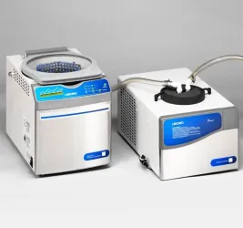 Labconco CentriVap Proteomic SystemVacuum concentrator: Uses centrifugal force, vacuum and controlled temperature from -4C upto +100C Sensor that reads internal chamber temperature Vacuum port with quick disconnect fitting for 0.25 in. ID tubing Has quick-stop system, control panel and glass lid DNA rotor accommodates up to 60 each 1.5 ml and 72 each 0.5 ml microcentrifuge tubes