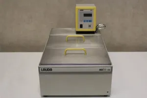 The Lauda Ecoline E119 Circulating Water Bath offers a working temperature range from 20 to 120°C with a temperature stability of ±0.02K, ensuring accurate and reliable performance for temperature-sensitive applications. The device features a maximum pump pressure of 0.4 bar and a pump flow rate of up to 17 L/min, accommodating bath volumes between 12 and 18 liters. Its dimensions are 331 x 536 x 349 mm, with a bath opening of 300 x 365 mm and a bath height of 150 mm.