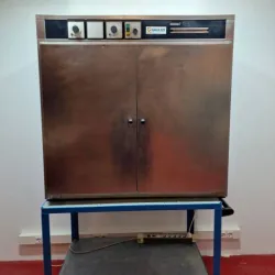 Memmert Incubator B60. Capacity 240 L. Temperature range from room temperature + 5ºC to 70 ° C. Interior dimensions 650800500 mm; exterior 11005901080 mm. Includes 2 shelves. Natural convection with 5 positions. Wall grommets. Analogical indicator. Support table not included.