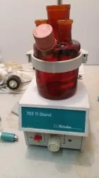 Introducing the Metrohm KF Coulometer Accessories—an excellent used solution designed to enhance your laboratory's efficiency in Karl Fischer titration applications. This comprehensive accessory set includes a Pt Generator Electrode and a durable vessel, ensuring precise electrolysis processes. Accompanying these are new high-quality cables for both the generator and working electrodes, promoting optimal electrical conductivity and performance. The set also features the 703 Ti Stand Stirrer, adeptly suited for thorough mixing of reagents, along with a reliable reagent pump, complete with hoses and bottle connections for seamless fluid management. This package is delivered exactly as shown, offering a fully integrated accessory suite for your coulometric needs.