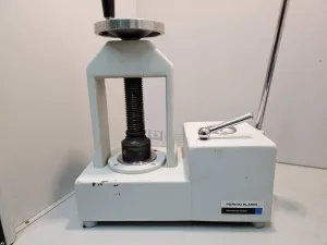 Hydraulic press from Perkin Elmer. Capacity: 25 T Housing (DxHxW): 190 x 490 x 405 mm