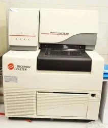 The Beckman Coulter ProteomeLab PA800 Capillary Electrophoresis (CE) Instrument, equipped with 32 Karat software, offers a robust protein characterization system. It provides an automated and quantitative approach to protein analysis, ensuring reliable performance and longevity. The PA 800 system handles SDS-gel molecular weight analysis, charge heterogeneity with capillary isoelectric focusing, and carbohydrate profiling for glycoprotein microheterogeneity. Its modular design allows for the easy interchange of detectors. Power requirements are 100-240V, 8A, 50/60Hz, with software version 7.0, build 1048.