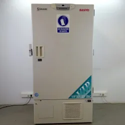 Sanyo MDF-U72V ultralow freezer. Minimum temperature -86 ºC. Capacity of 728 L. Dimensions: internal 8605601400 mm; external 10008702015 mm. Two internal doors. A plate. Visual and audible alarms for high and low temperature, power outage, filter check and automatic return. 230/240V User manual.