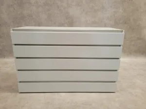 The S+B Plinth Cabinet features five spacious drawers, offering robust and efficient storage solutions for laboratory settings. Measuring 1200mm in width, this ice blue cabinet is designed for optimal organization and accessibility, making it an essential component of any laboratory furniture suite.