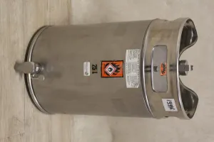 The stainless steel solvent storage vessel boasts a 25-liter capacity, featuring a drain valve and a steel inlet filter to ensure safe and efficient handling of solvents.