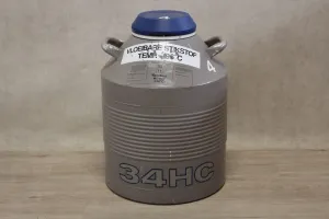 The Taylor-Wharton 34HC Liquid Nitrogen Dewar is designed for efficient cryogenic storage. It offers a capacity of 34 liters with a daily evaporation rate of 0.17 liters/day, ensuring long-term storage with a dynamic endurance of 125 days. The dewar's neck diameter is 91 mm, accommodating 6 canisters with a total vial capacity of 684. The unit's empty weight is 16.1 kg, while the full weight reaches 43.5 kg, making it both robust and highly functional for various laboratory applications.