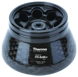Thermo Scientific FiberLite F15-8x50cy Fixed Angle Rotor The FiberLite F15-8x50cy rotor is brand new, and designed for use with Thermo Scientific XT/XF Series, X1/X3 Series, SL40F centrifuges. Constructed from lightweight carbon fiber for enhanced performance and durability, this rotor is designed for exceptional structural integrity and wear resistance. Capable of reaching up to 14,500 rpm, it achieves higher G-forces for shorter centrifugation times and accommodates a capacity of 8x50ml conical tubes.