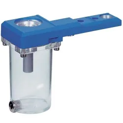 VACUUBRAND AK Inlet Separator/Catchpot for RE/RZ5, RE/RZ6, and RE/RZ 2.5 Separators at the inlet protect pumps from particulates and droplets which may shorten service intervals and even reduce the lifetime and the operating performance of oil-sealed rotary vane pumps. Separators (AK) protect the vacuum pump at the inlet from particles and liquid droplets. Separators catchpot made of plastic (PMP) with good chemical resistance.