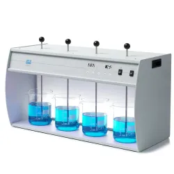 Constructed from epoxy-painted metal, this model accommodates four positions, providing versatility for various experimental needs. The stainless steel stirring rods are adjustable in height with a self-blocking chuck, facilitating easy customization to suit your specific applications.