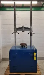 This Wykeham Farrance Oedometer CBR Testing unit was previously part of a university lab's equipment inventory but was removed as it became surplus to requirements. The unit is fully operational, with a functioning hand control and a hydraulic ram that moves with ease. It remains in satisfactory cosmetic condition, bearing some marks from previous use.