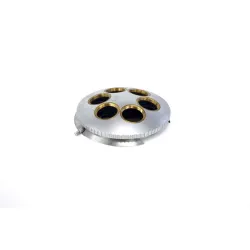 This Zeiss Axiomat 6-Place Nosepiece (Model 475609) is a fully functional and rigorously tested piece of equipment, ready to be integrated into your microscopy setup. As a high-quality component from Zeiss, it facilitates precise and efficient objective changes, ensuring enhanced productivity for your microanalysis tasks. Further details will be provided upon request.