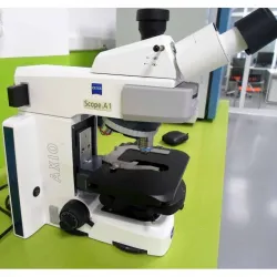 Optical microscope Zeiss Axio Scope. Binocular. Objectives N-Achroplan: (10x/0,25; 20x/0,45; 40x/0,65). Ambient temperature (+5 to 40ºC). Reflectors: 2x slider, a 4x and 6x tower. Bright-field, dark, phase contrast and contrast techniques of interference-DIC and PlasDIC. Adjust intensity. Ample space for displays. Ergonomic. Comfort operational. Manual included.