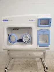 The Baker Ruskinn Invivo2 500 Hypoxia Glovebox Workstation, mounted on a convenient trolley, is designed to create precise hypoxic conditions essential for research applications. This system was previously used in a university laboratory and is no longer needed. It powers up successfully and has been tested with a digital thermometer, although this accessory is not included with the unit. The CO2 and O2 sensors are fully functional, ensuring reliable performance. The unit is in excellent cosmetic condition both inside and out, though the internal light is non-operational. The accompanying trolley is equipped with castors and measures 141 x 71 x 83 cm (l x w x h), allowing easy mobility and integration into your laboratory environment.